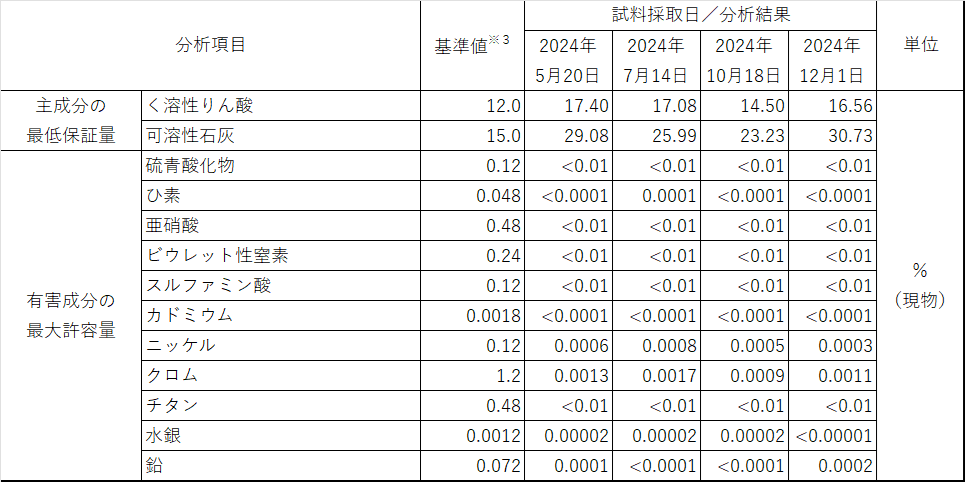 ※3 表中の基準値は、「肥料の品質の確保等に関する法律に基づき普通肥料の公定規格を定める等の