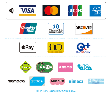 Diners Club、Discover、Apple Pay、iD、QUICPay、交通系電子マネー
