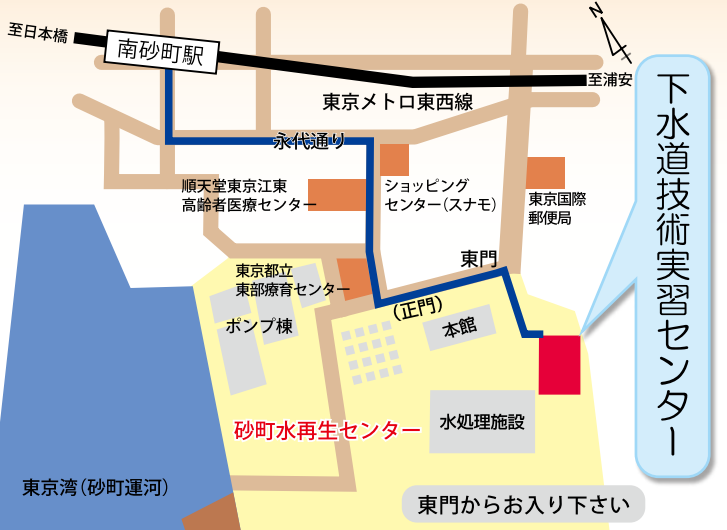 〒136-0075 東京都江東区新砂3-9-1 砂町水再生センター内