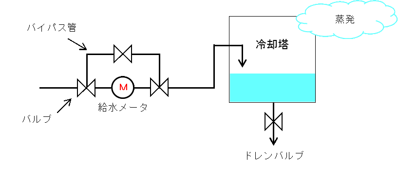 また、冷却塔やボイラー等で、公共下水道へのブロー排水を行う場合は、当該設備への「給水量」及び「排水量」を計測できる位置に私設量水器を設置してください。