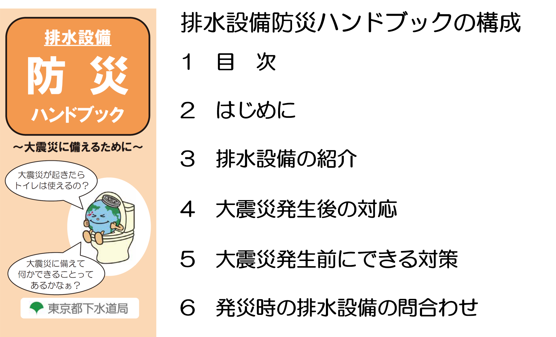 排水設備の確認・修理依頼の方法等は、本ページの排水設備防災ハンドブックに記載されています。