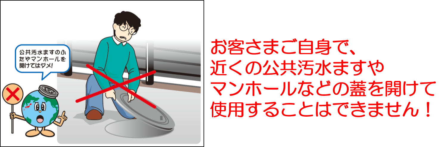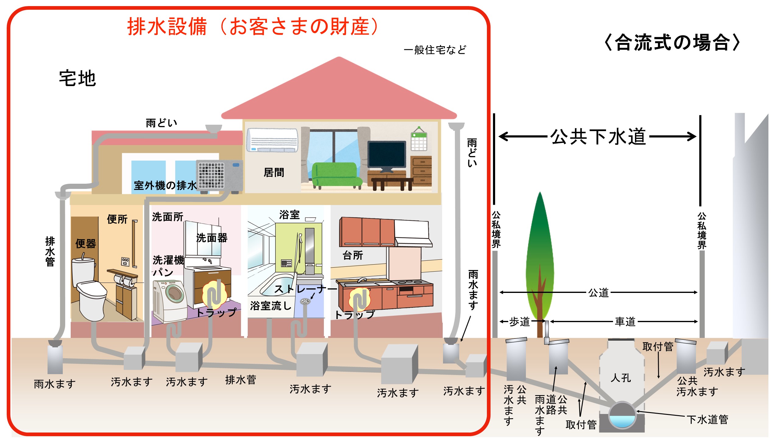 排水設備はお客さまの財産であるため、災害時においてもお客さまの費用で修理や維持管理等をする必要があります。