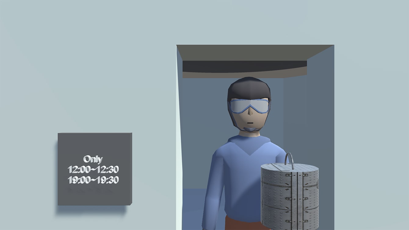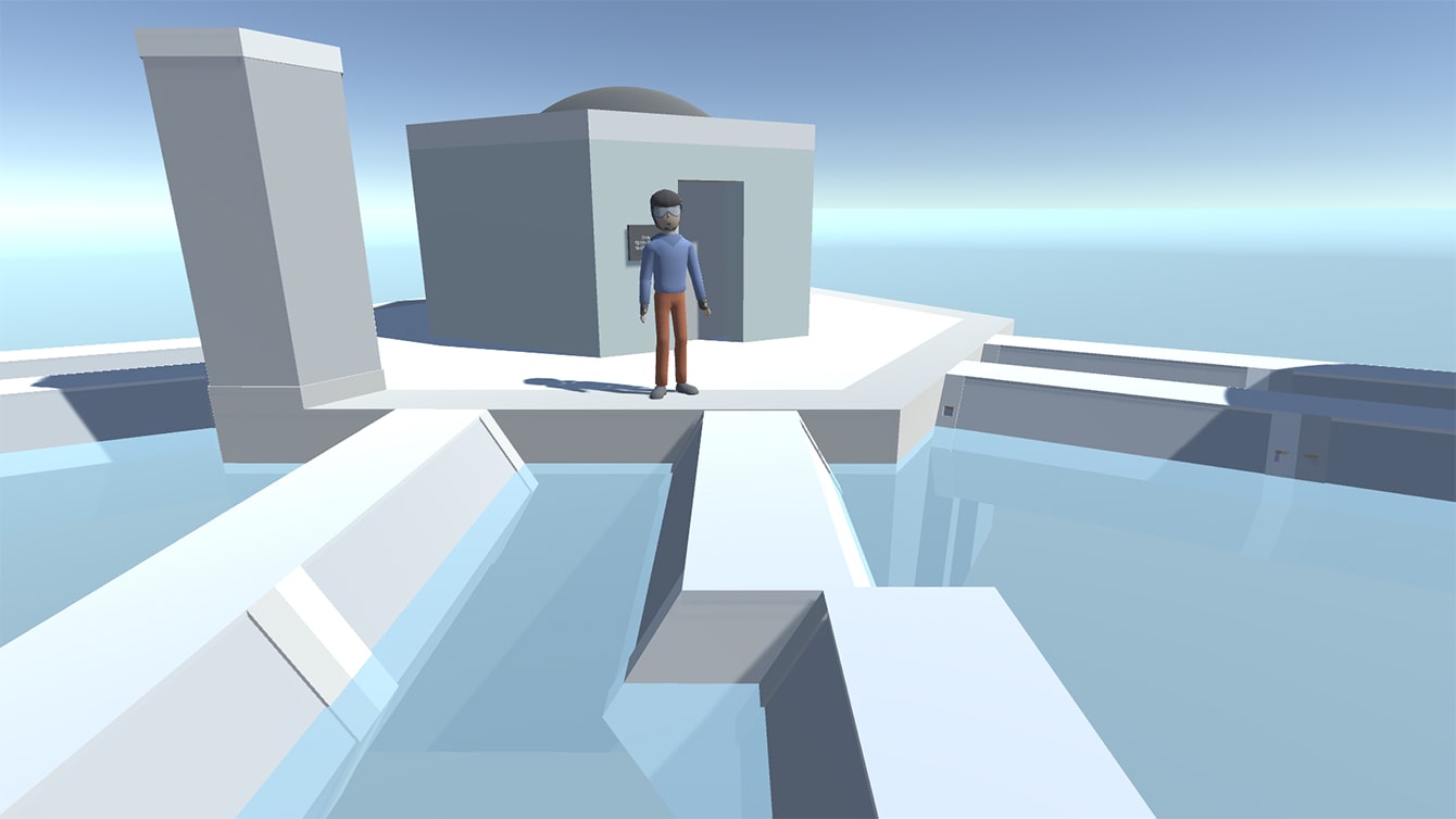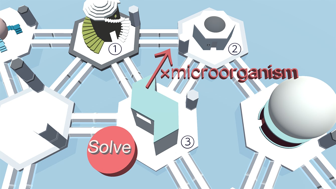 カイトがモニター上の”Solve”ボタンを押すと、床から円柱形の金属ケースがせり上がってくる。この中には微生物が保管されており、カイトはこれを②反応槽がある隣島に届けなければならない。