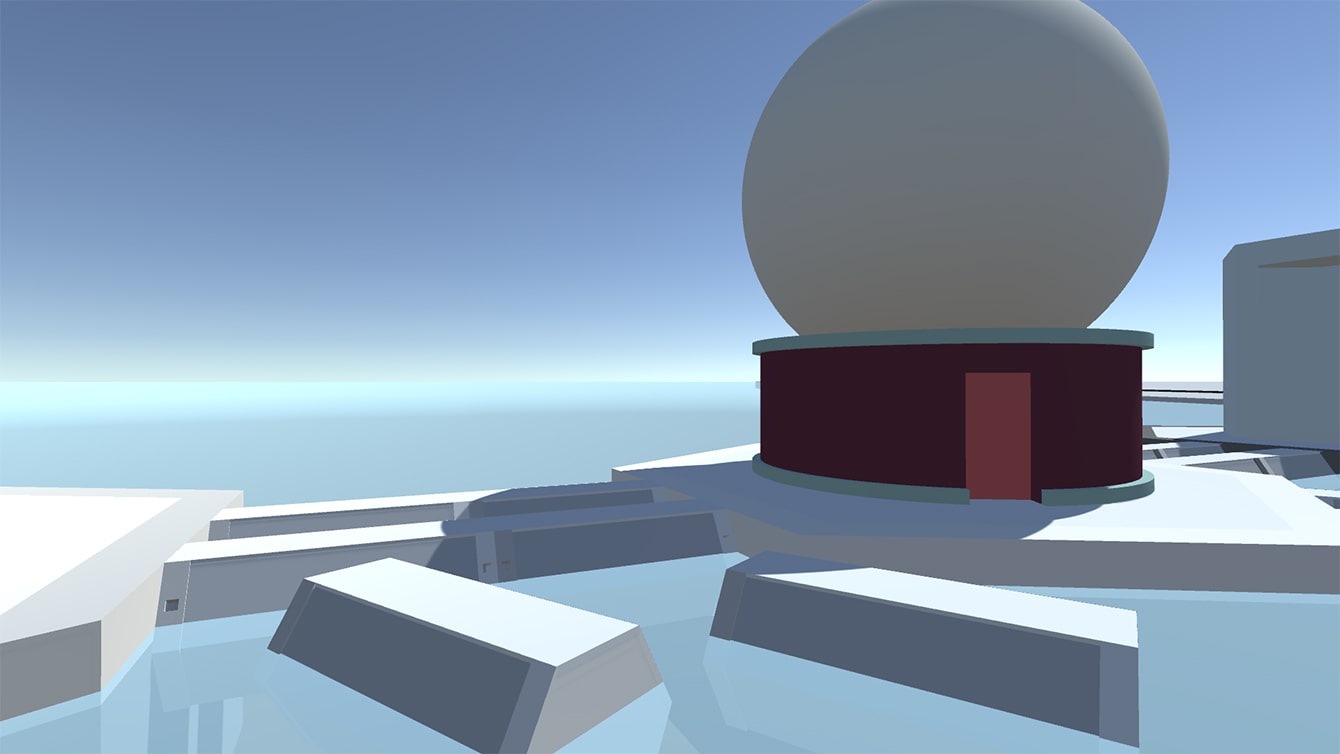 準備を整えた3人はパイプを集めて、海面にパビリオンを作り始める。それぞれがデザインの案を出しながら、パイプやキューブを組み合わせていく。そして2日がかりでフロートIの海面に、噴水が完成する。パイプ4本を組み合わせた大きな柱の周りを、さらに4本のパイプが囲み、それらが海面から空に向かって伸び、水を噴き上げている。