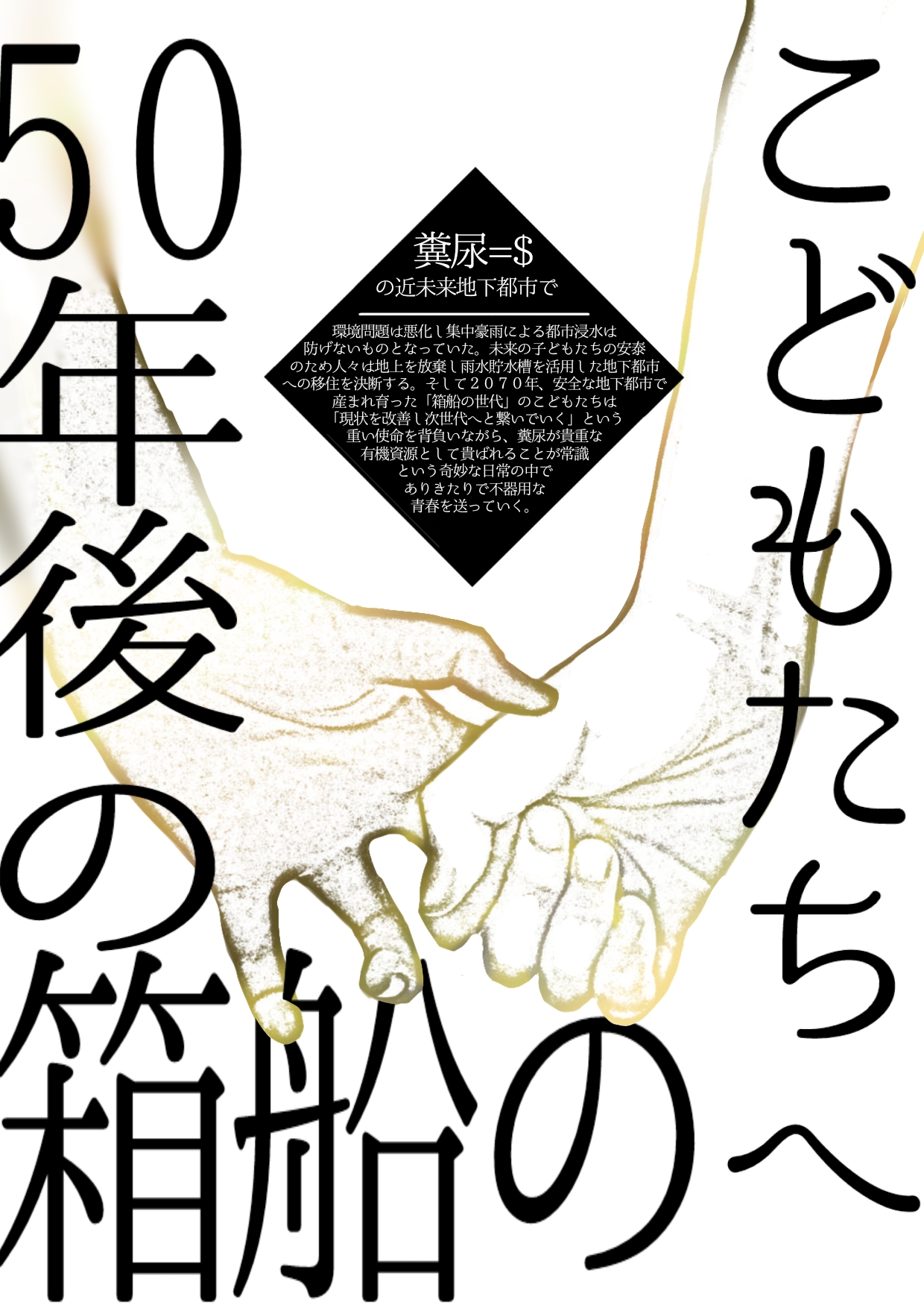 人々は地上を放棄し、雨水貯水槽を活用した地下都市への移住を決断する。そして2070年、人類最後の砦である地下都市では、貴重な有機資源かつエネルギー源として健康なこどもたちの糞尿が金銭のように重宝され尊ばれていた。